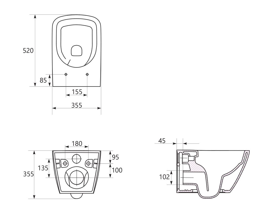 • přední instalace splachovacím tlačítkem