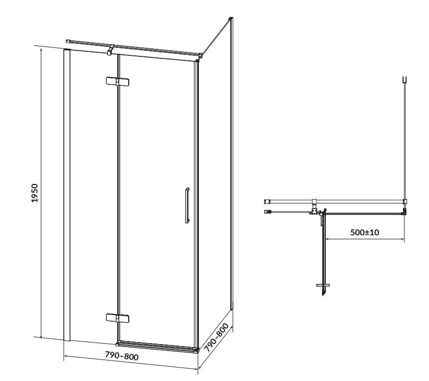 CERSANIT - JOTA rohový sprchový kout - (80x80X195) průhledné sklo - chrom, LEVÝ (S160-005)