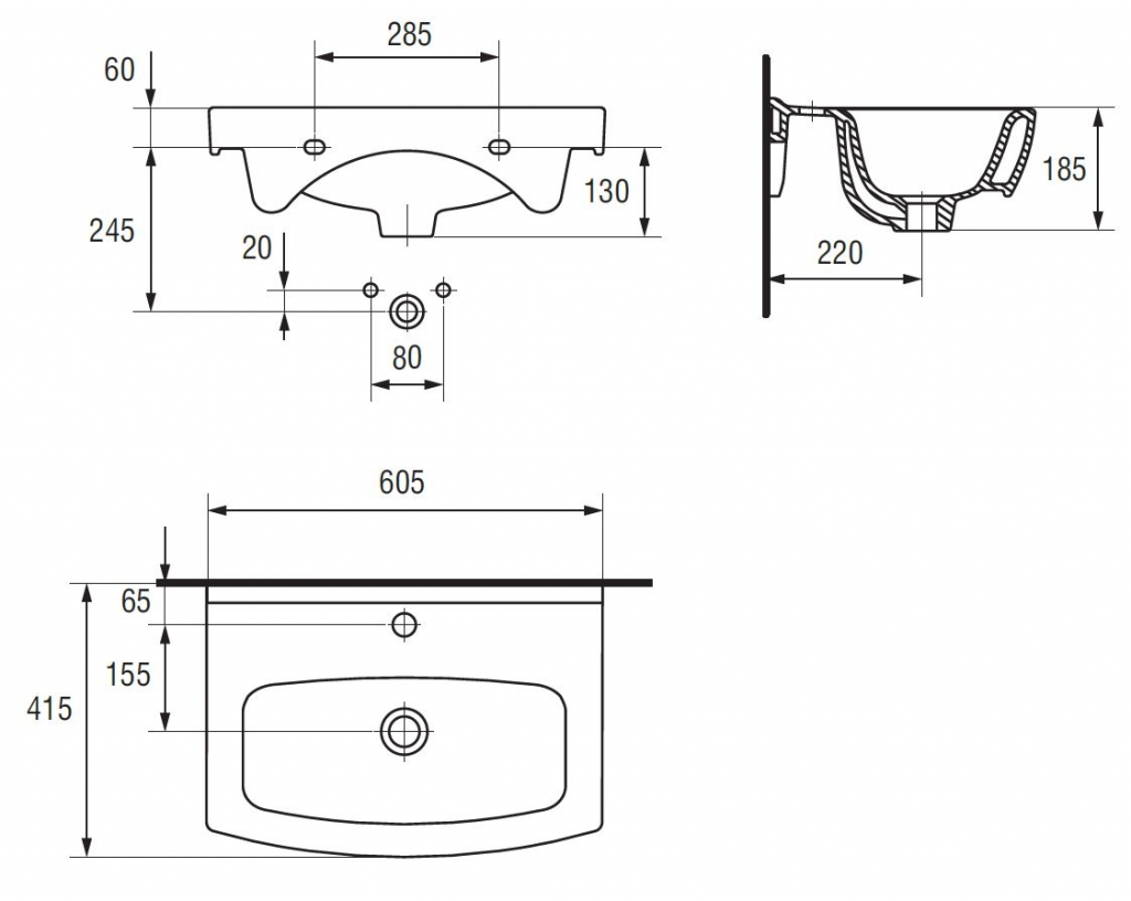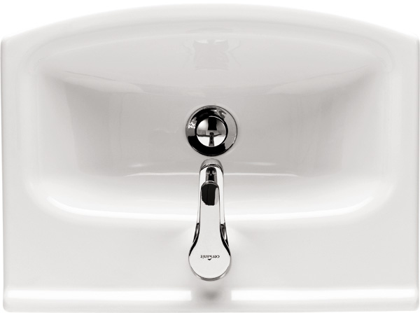Nábytkové umyvadlo CERSANIA NEW 60 s otvorem na armaturu. Lze kombinovat se skříňkou z řady BIANCO, FRIDA, LIMA, OLIVIA, MELAR nebo upevněn ke stěně s chromovým sifonem. Cena bez baterie.