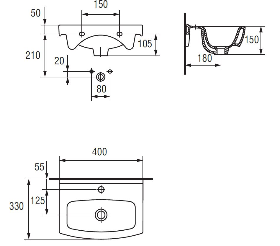 Nábytkové umyvadlo CERSANIA NEW 40 s otvorem na baterii. Lze kombinovat se skříňkou z řady BIANCO, OLIVIA, MELAR nebo upevněn ke stěně s chromovým sifonem. Cena bez baterie.