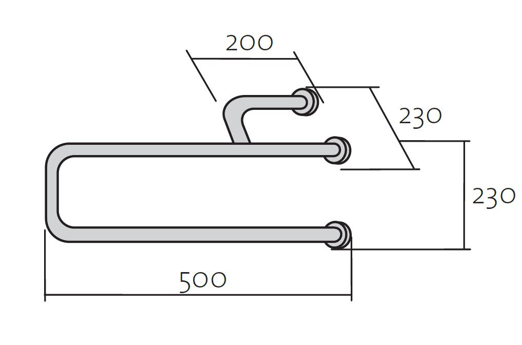 Umyvadlové madlo nástěnné /nepohyblivé/ 550 mm levé. Maximální zatížení 120 Kg.