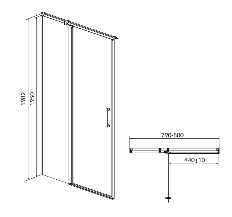 Sprchové dveře MODUO jsou k dispozici ve třech velikostech 80, 90 a 100 cm, provedení pravé nebo levé varianty.