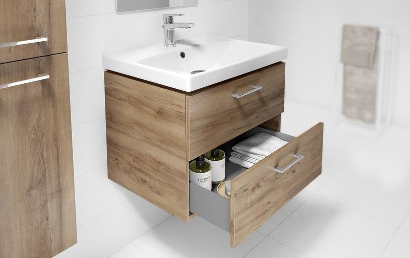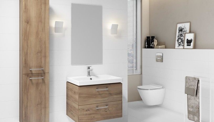 Koupelnový nábytek Lara v barvě vlašského ořechu vytváří hřejivou atmosféru. Tlumeně hnědá barva dřeva se skvěle hodí do klasické, nadčasové koupelny.