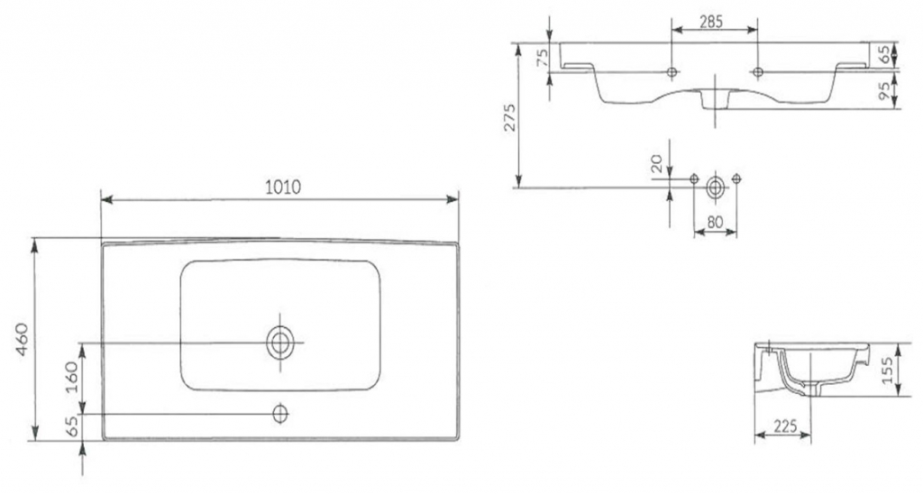 Nábytkové umyvadlo CREA 100 s přepadem a otvorem na armaturu.