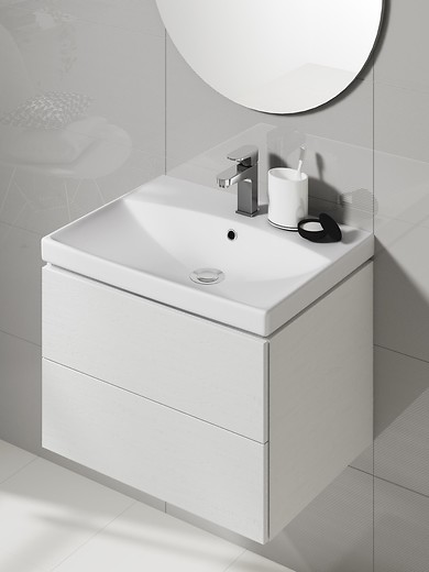 Nábytkové umyvadlo CITY 50 s otvorem na armaturu. Umyvadlo s moderními tvary, který je vhodné pro více kolekcí nábytku. Cena je uvedena bez baterie.