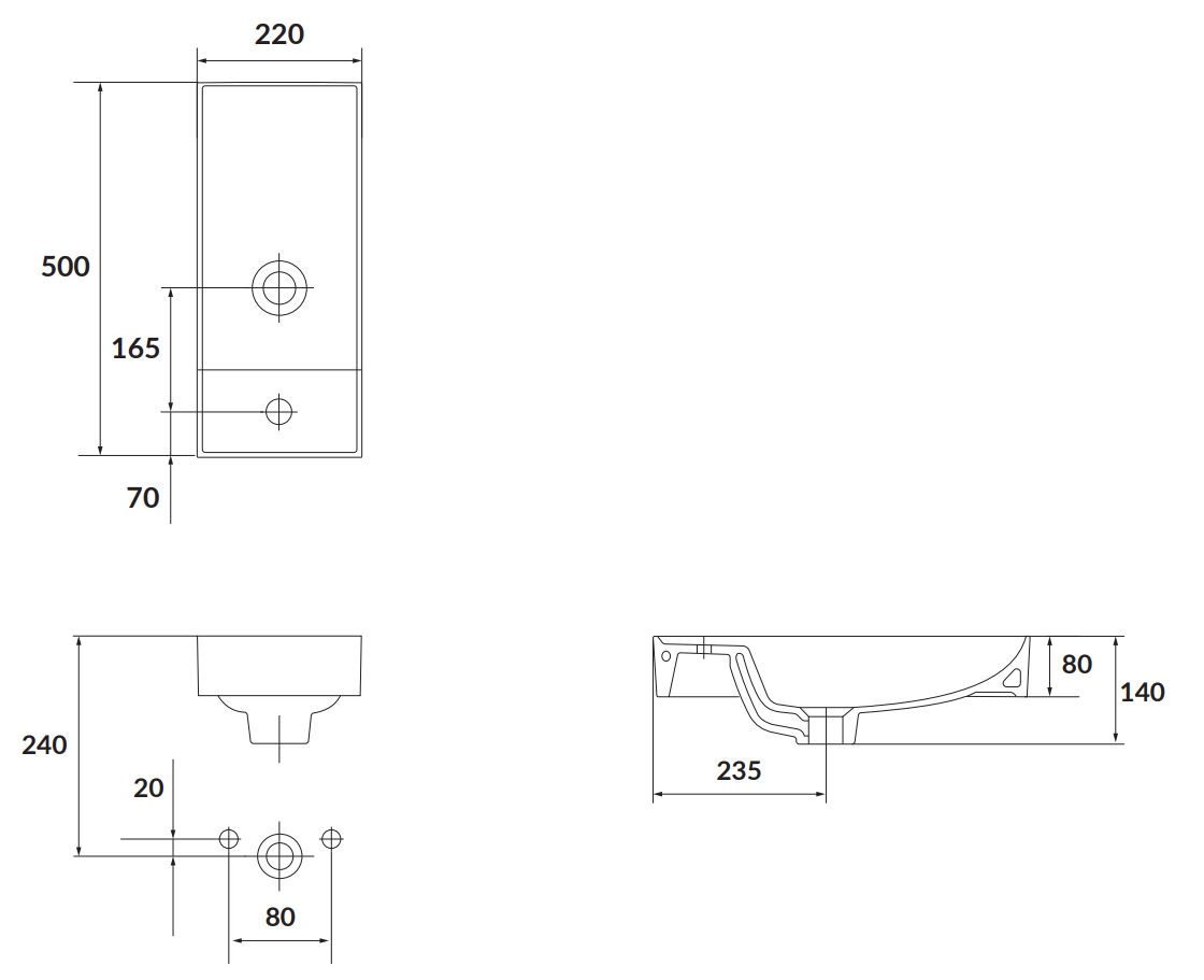 Součástí umyvadla není baterie ani výpust.