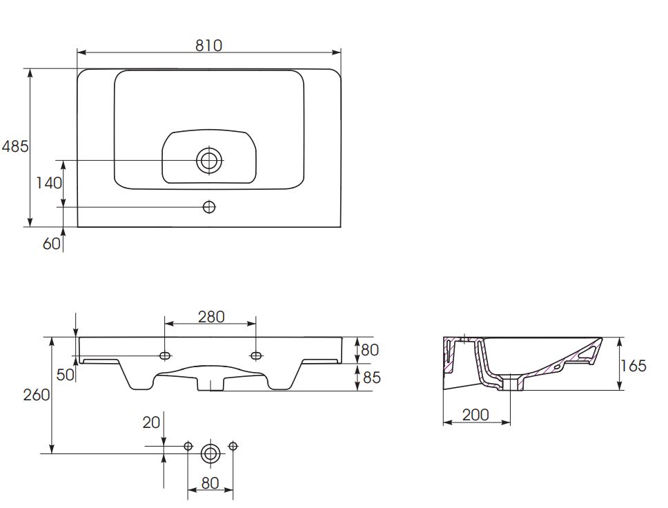 Nábytkové umyvadlo MILLE 80x45 (K675-003)