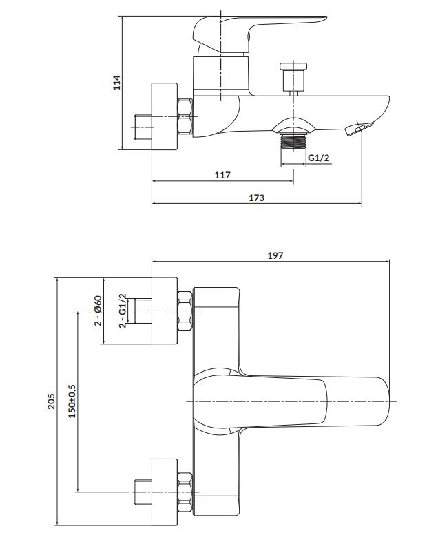 Nástěnná vanová páková baterie série CITY od výrobce CERSANIT s roztečí 150 mm.