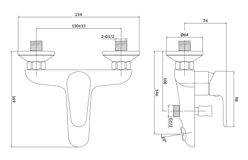 CERSANIT - Nástěnná vanová baterie LIBRA s přepínačem bez příslušenství, chrom (S951-406)
