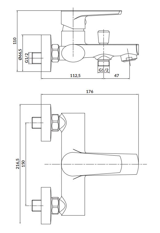 Nástěnná vanová baterie MODUO, páková, chrom (S951-346)