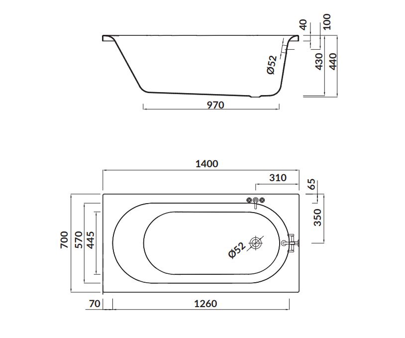 CERSANIT - Obdélníková vana OCTAVIA 140x70 (S301-250)
