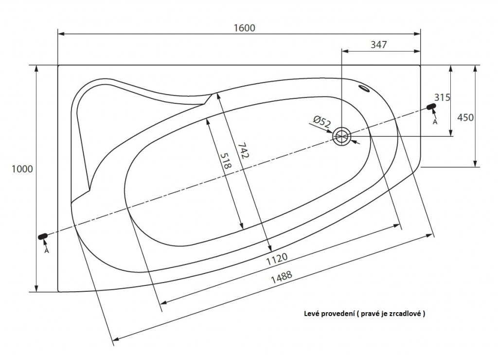 Asymetrická vana SICILIA se prodává s nastavitelnými nožičkami.