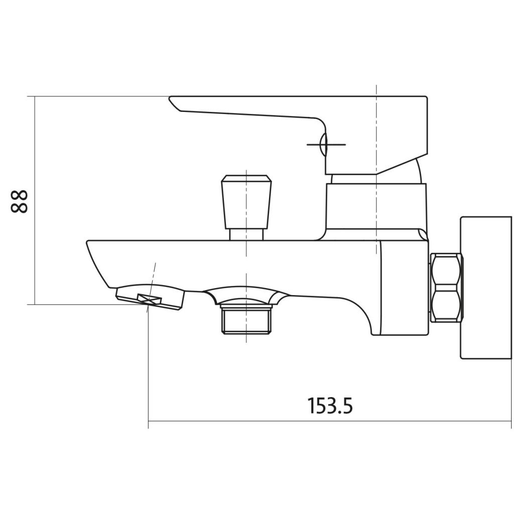 Vanová baterie MILLE jednopáková, dvouotvorová, nástěnná, s pevným výtokovým ramínkem, s přepínačem, CHROM