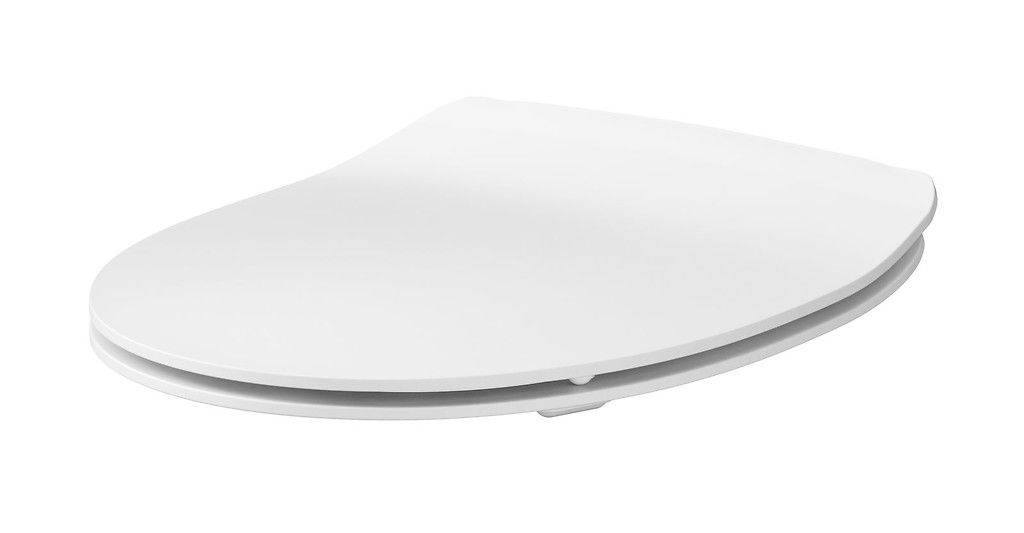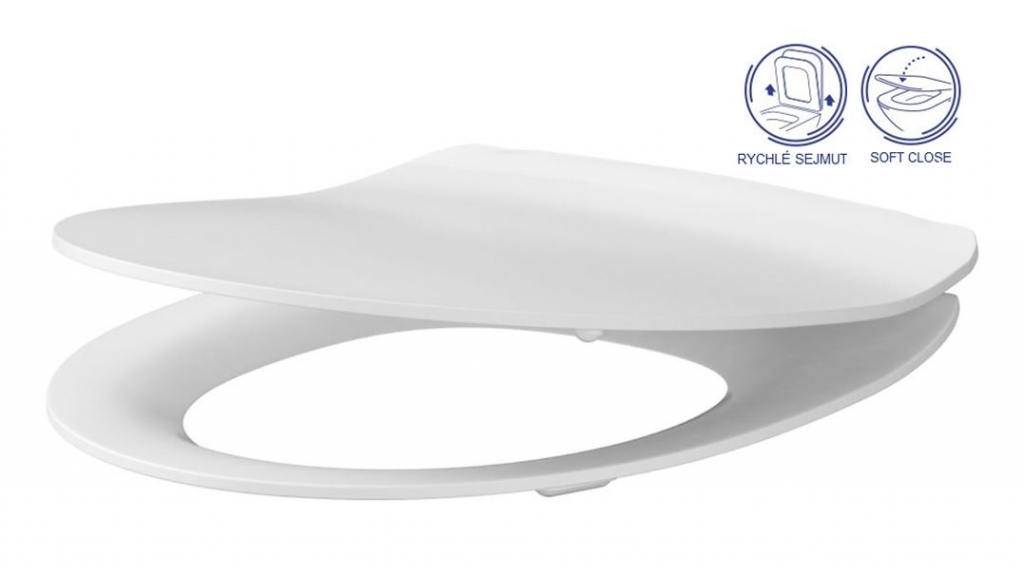 Moderní stojící keramická WC mísa s technologií Clean on a plachováním 3/ 5l. Součástí je duroplastové speciálně tvarované sedátko MODUO/ DELFI SLIM s funkcí pomalého klesání, která zajišťuje, že se deska vždy zavírá potichu.