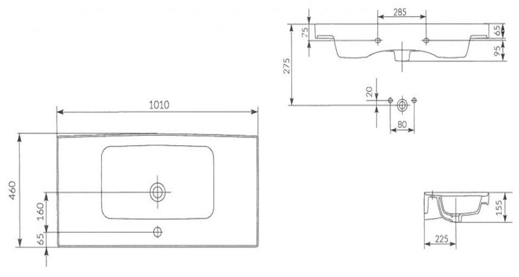 Nábytkové umyvadlo CREA 100 s přepadem a otvorem na armaturu.