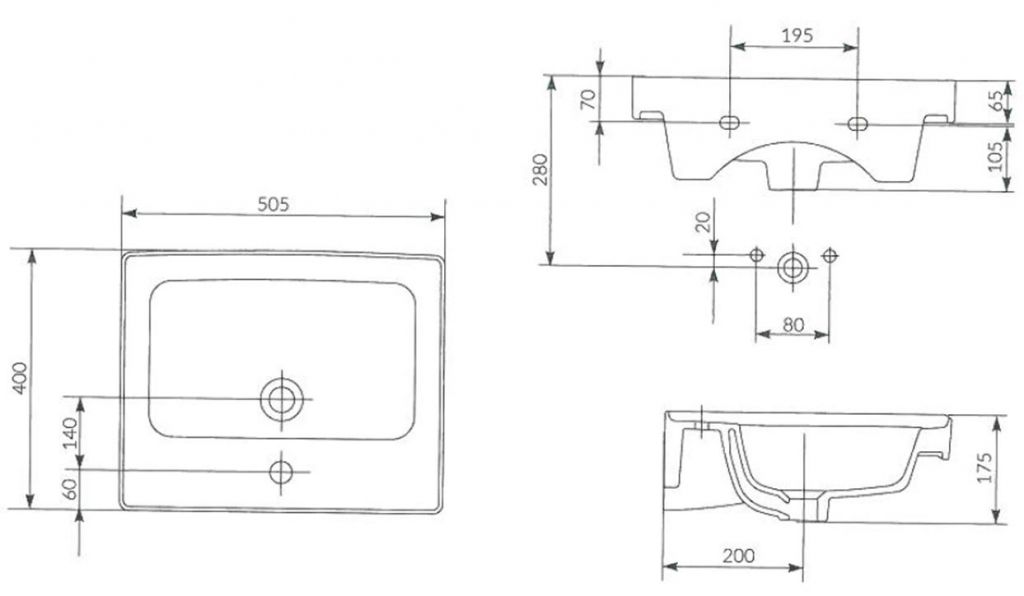 Nábytkové umyvadlo CREA 50 s přepadem a otvorem na armaturu.