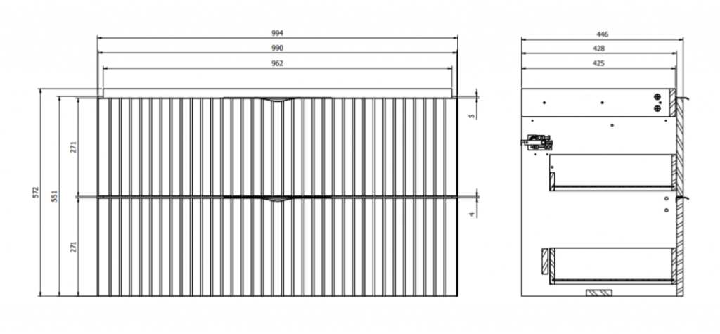 Sada obsahuje umyvadlovou skříňku TIRSO 100 ve verzi DSM a keramické umyvadlo COMO 100. Skříňka má dvě prostorné zásuvky s plným dnem, které poskytují více místa pro uložení různých koupelnových doplňků – proto doporučujeme použít prostorově úsporný sifon. Čelo skříňky je vyrobeno z drážkované MDF desky s matnou povrchovou úpravou, která jí dodává jemnou texturu a elegantní vzhled. Korpus skříňky je vyroben z laminované dřevotřísky, dostupné také v matné povrchové úpravě.