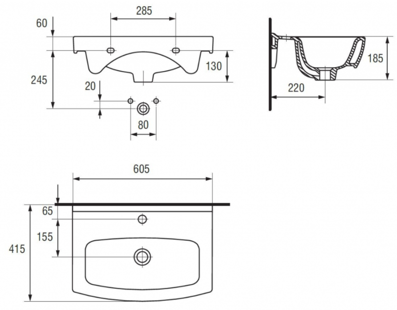 | Šířka umyvadla | 605 mm |
