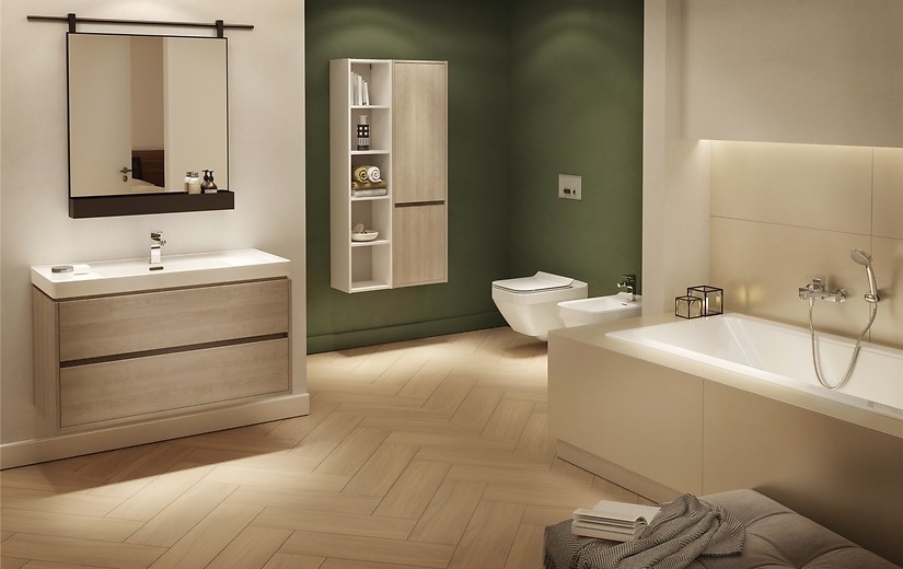 Závěsný sloupek CREA s dvířky v provedení dub, vyrobený moderní technologií AQUASAFE /zvýšená odolnost proti vlhkosti/. Skříňka působí elegantním vzhledem díky zapuštění přední části a využití skrytých madel. Dvířka jsou vybavena tichým uzavíracím systémem, který zvyšuje komfort používání.