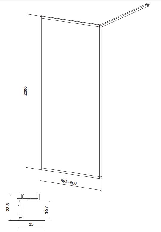 Sprchový kout WALK-IN LARGA ČERNÉ 90X200 TRANSPARENT SKLO (S932-138)