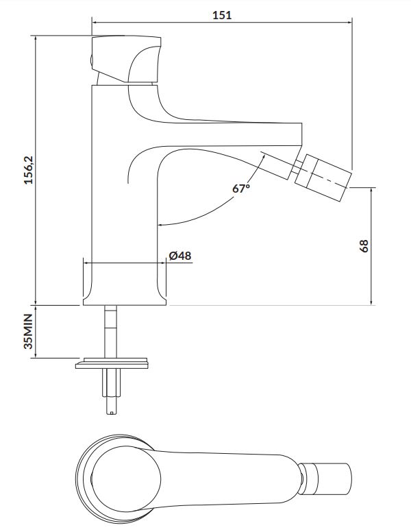 Stojánková bidetová baterie INVERTO ve zlatém provedení je dodávána se dvěma ovládacími páčkami, kdy je možnost výběru dle vašeho vkusu. Součástí umyvadlové baterie jsou flexibilní hadičky o délce 45 cm.