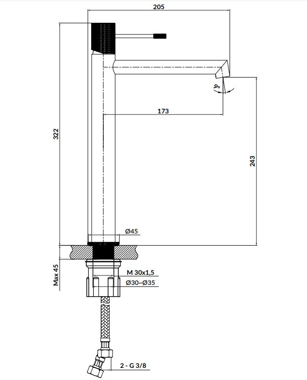 CERSANIT - STOJÁNKOVÁ VYSOKÁ UMYVADLOVÁ BATERIE ZEN BY CERSANIT, ČERNÁ (S951-596)