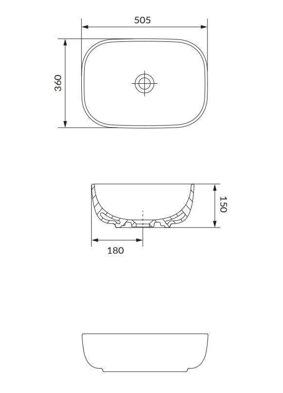 Umyvadlo na desku MODUO 50 obdélníkového tvaru je vyrobeno z šamotové keramiky - s tenkými 8 milimetrovými stěnami. Jeho designový vzhled bude dokonale zapadat do moderních interiérů koupelen a jeho antracitová glazura podtrhne modernost a styl místnosti.