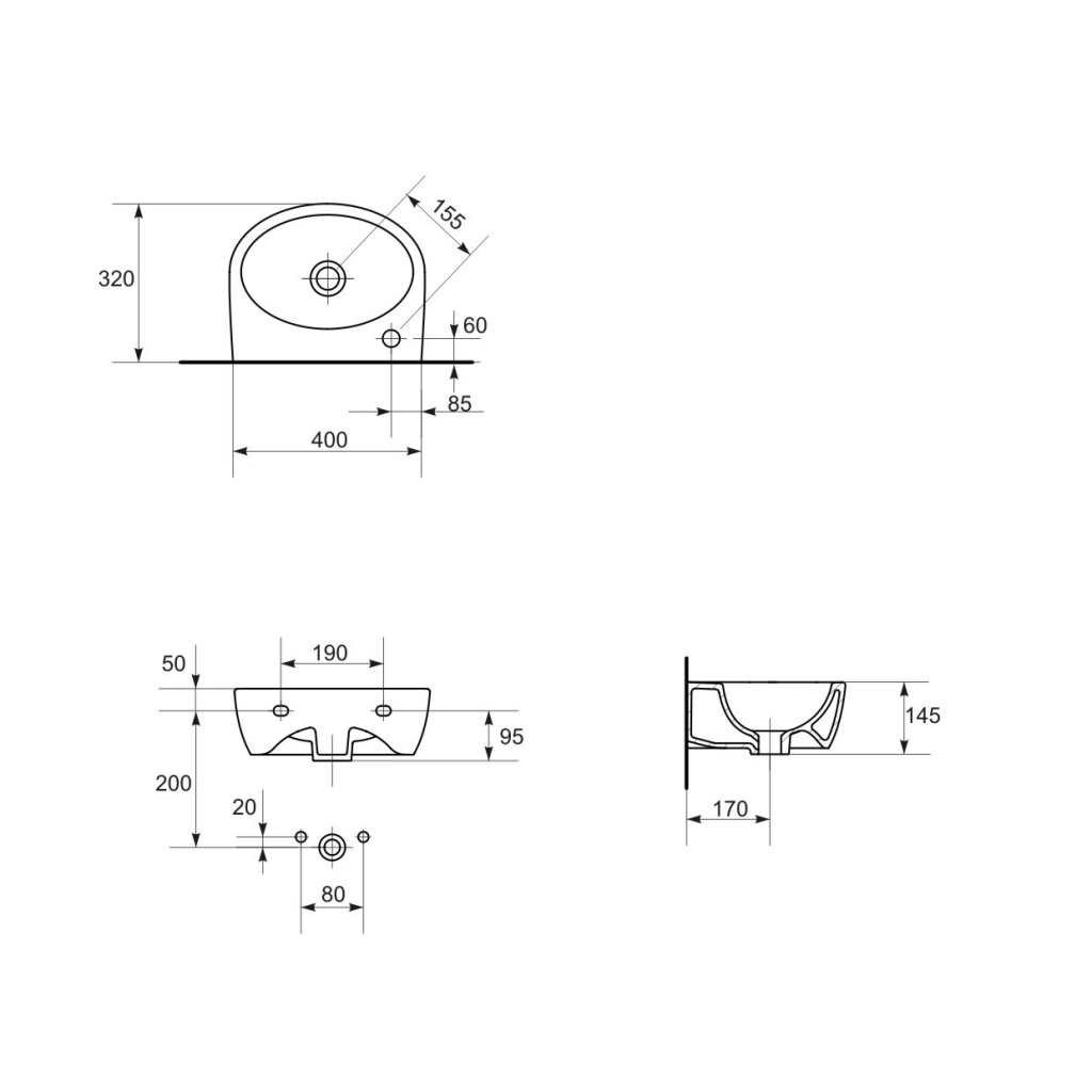 Závěsné umyvadlo PARVA bílé barvy s otvorem pro armaturu a přepadem, ideální pro malé koupelny. Montáž ke stěně s chromovým sifonem.