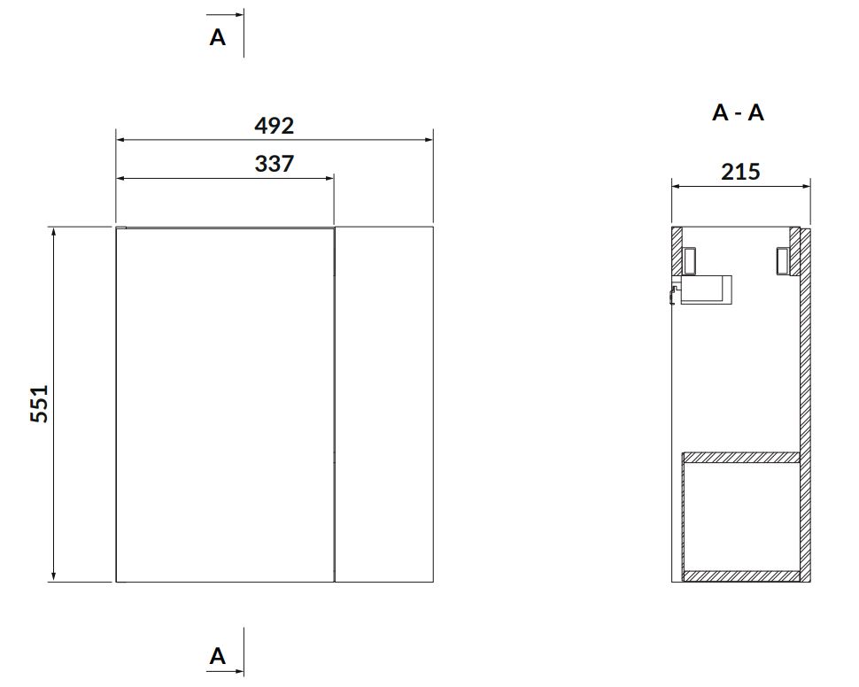 Umyvadlová skříňka LARGA 50x22 s měkkým zavíráním soft-close a boční policí. Dřevotřísková deska, ze které je skříň vyrobena, má certifikát FSC MIX CREDIT SGSCH-COC-007574. Nábytkové frézované úchytky lze vybrat ve třech barvách (stříbrné, zlaté, černé), k zakoupení samostaně, není součástí skříňky.