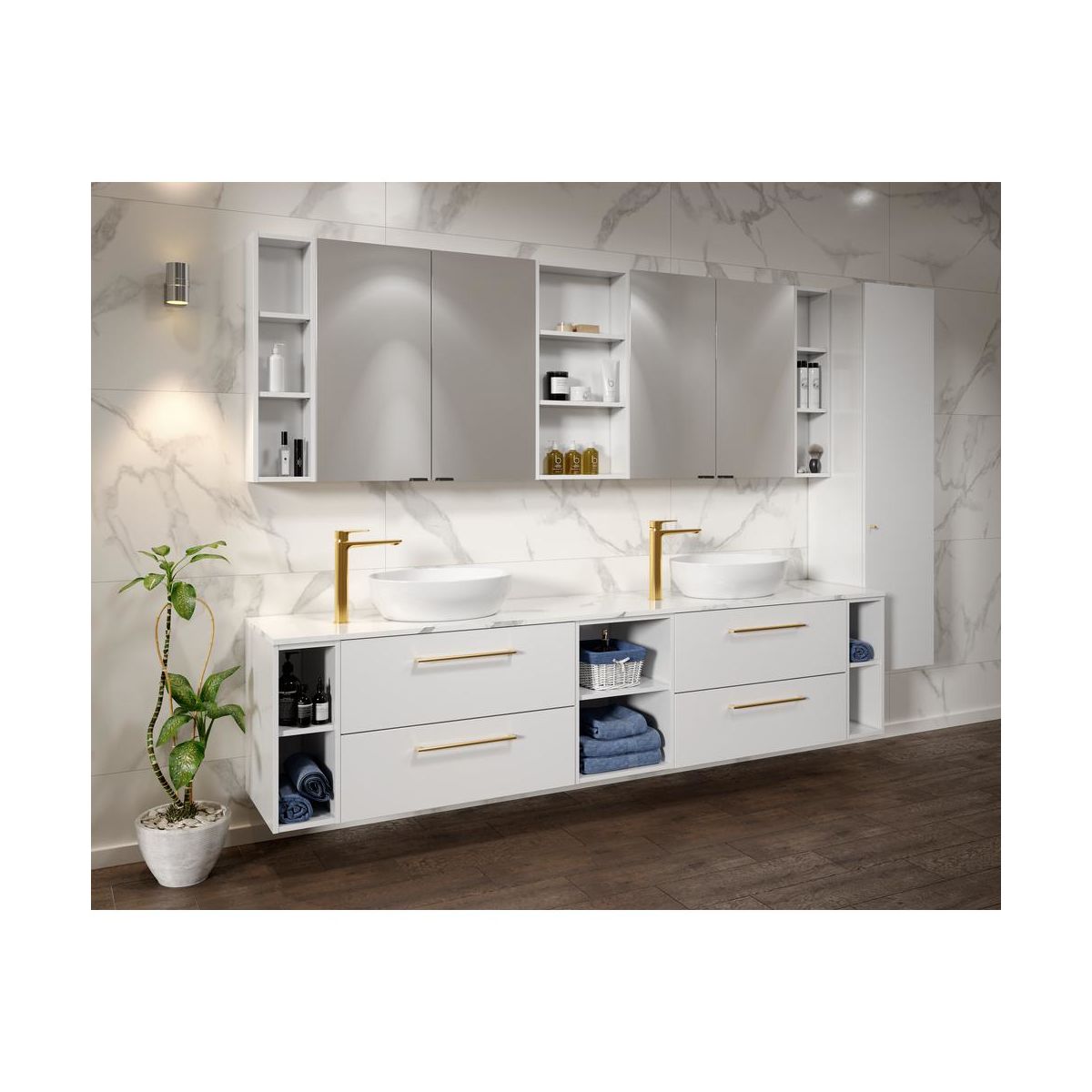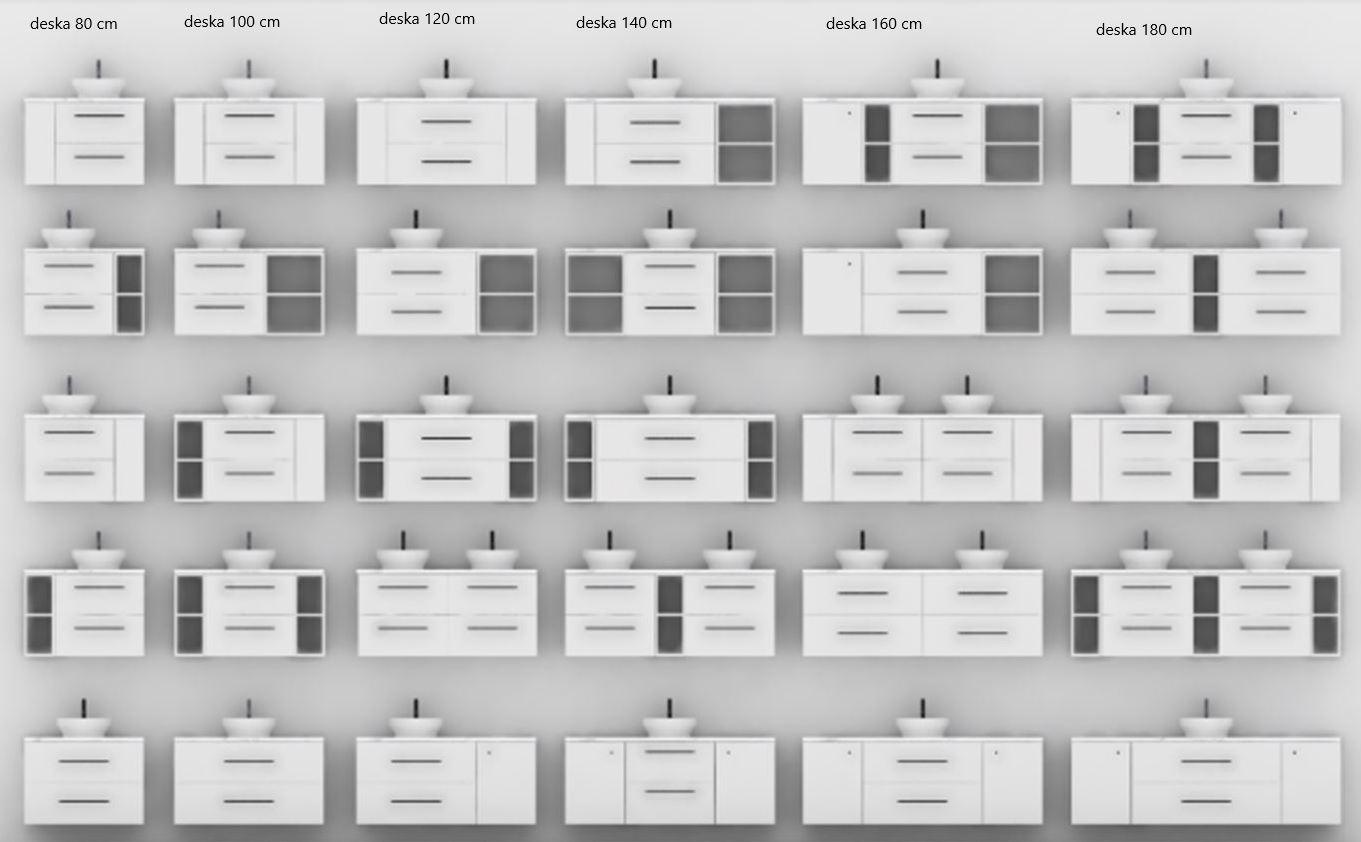Umyvadlová skříňka lze instalovat s nábytkovým umyvadlem nebo s použitím odkládací desky a následně vybrat umyvadlo na desku.
