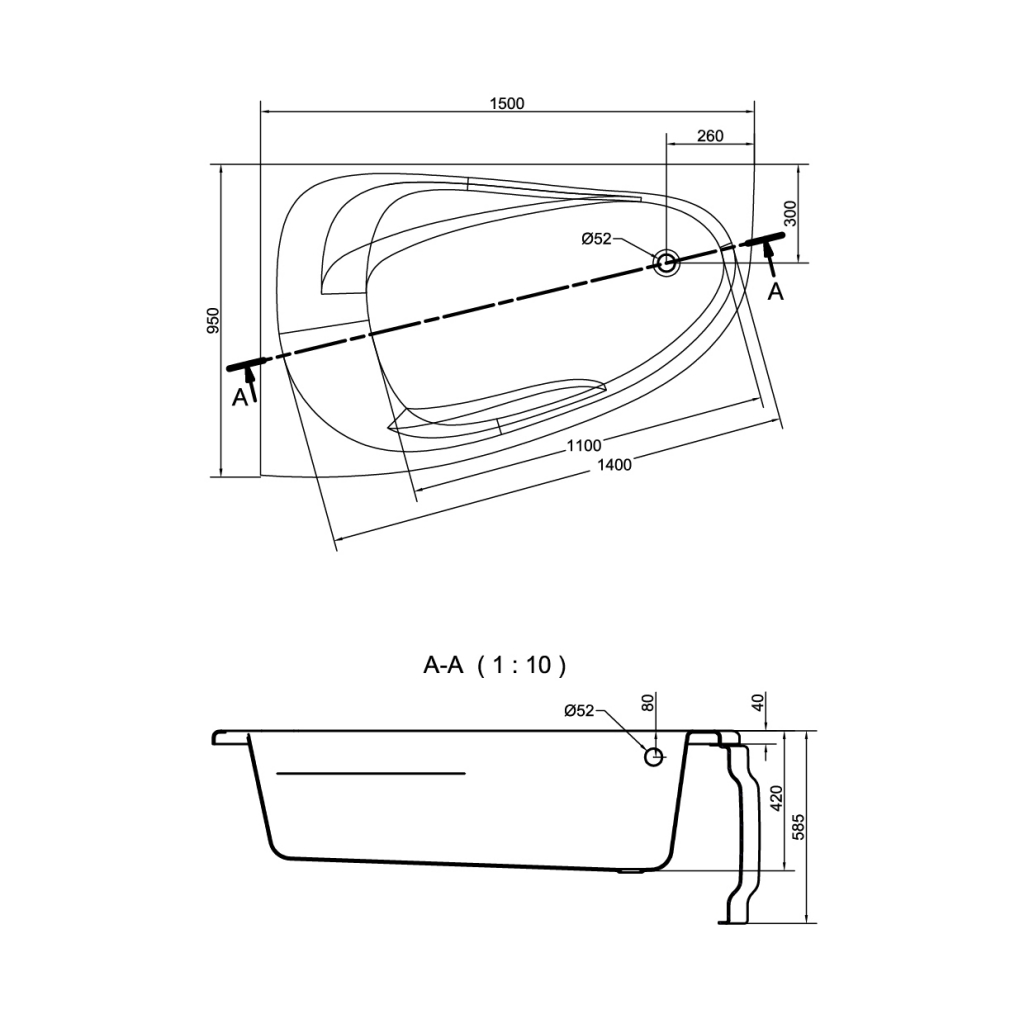 Asymetrická vana JOANNA NEW se prodává s nastavitelnými nožičkami.