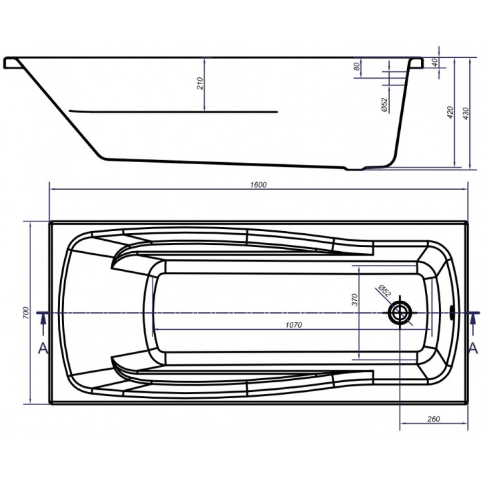 Obdélníková vana LANA 160 se prodává s nastavitelnými nožičkami.