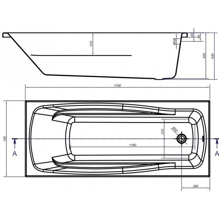Obdélníková vana LANA 170 se prodává s nastavitelnými nožičkami.