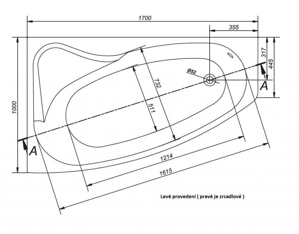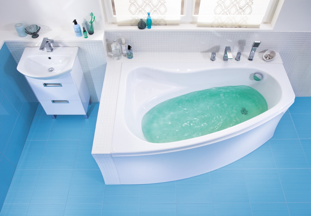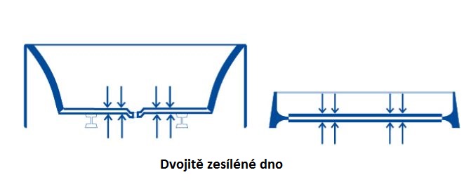 Asymetrická vana SICILIA se prodává s nastavitelnými nožičkami.