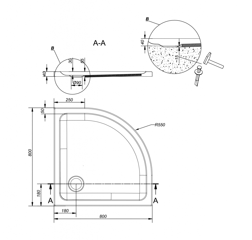 Sprchová čtvrtkruhová vanička TAKO je vyrobená z akrylátu nejvyšší kvality s dvojitou výstuží (pryskyřice a laminát).