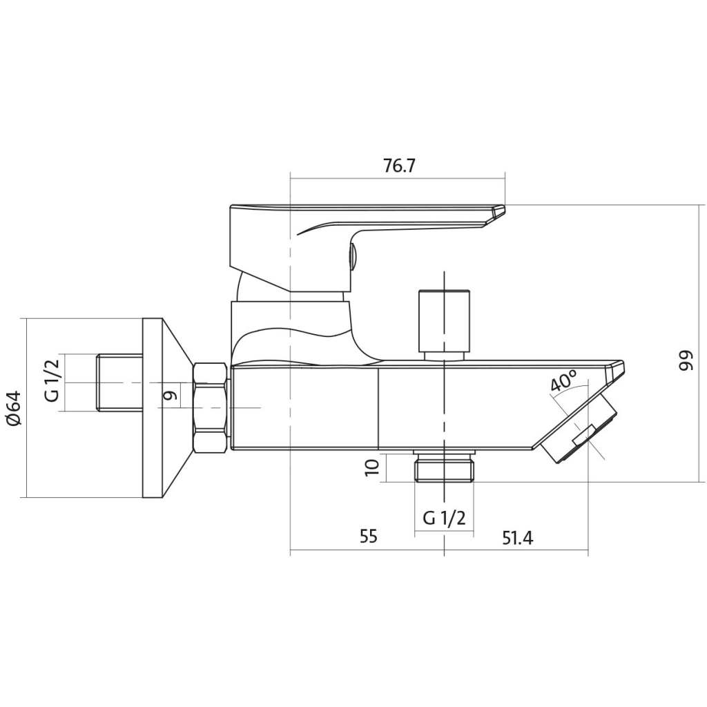CERSANIT - Vanová baterie VERO jednopáková, nástěnná, s pevným výtokovým ramínkem, s přepínačem, CHROM (S951-004)