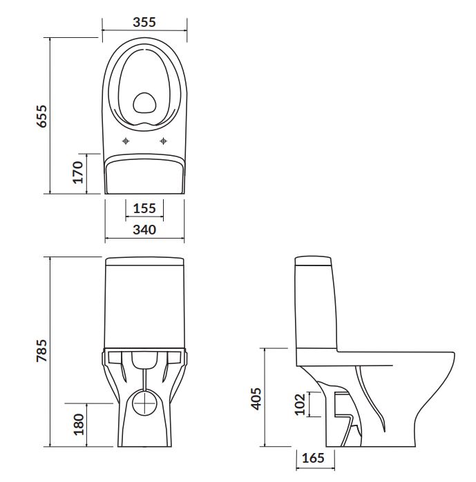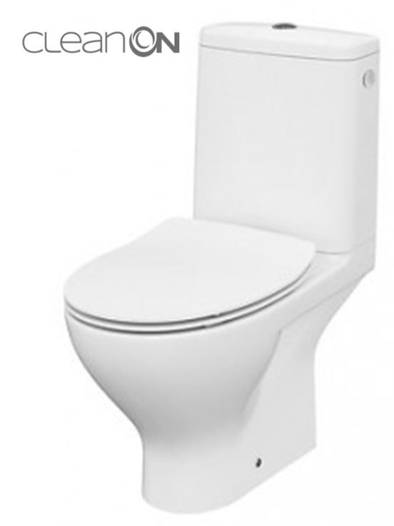 WC kombi MODUO CLEAN ON se zadním odpadem, přívod vody z boční části nádrže s úsporným splachováním 3/5l. Součástí je duroplastové, antibakteriální sedátko SLIM s pomalým sklápěním /soft close/ a jednoduchým sejmutím a upevněním sedátka EASY OFF.