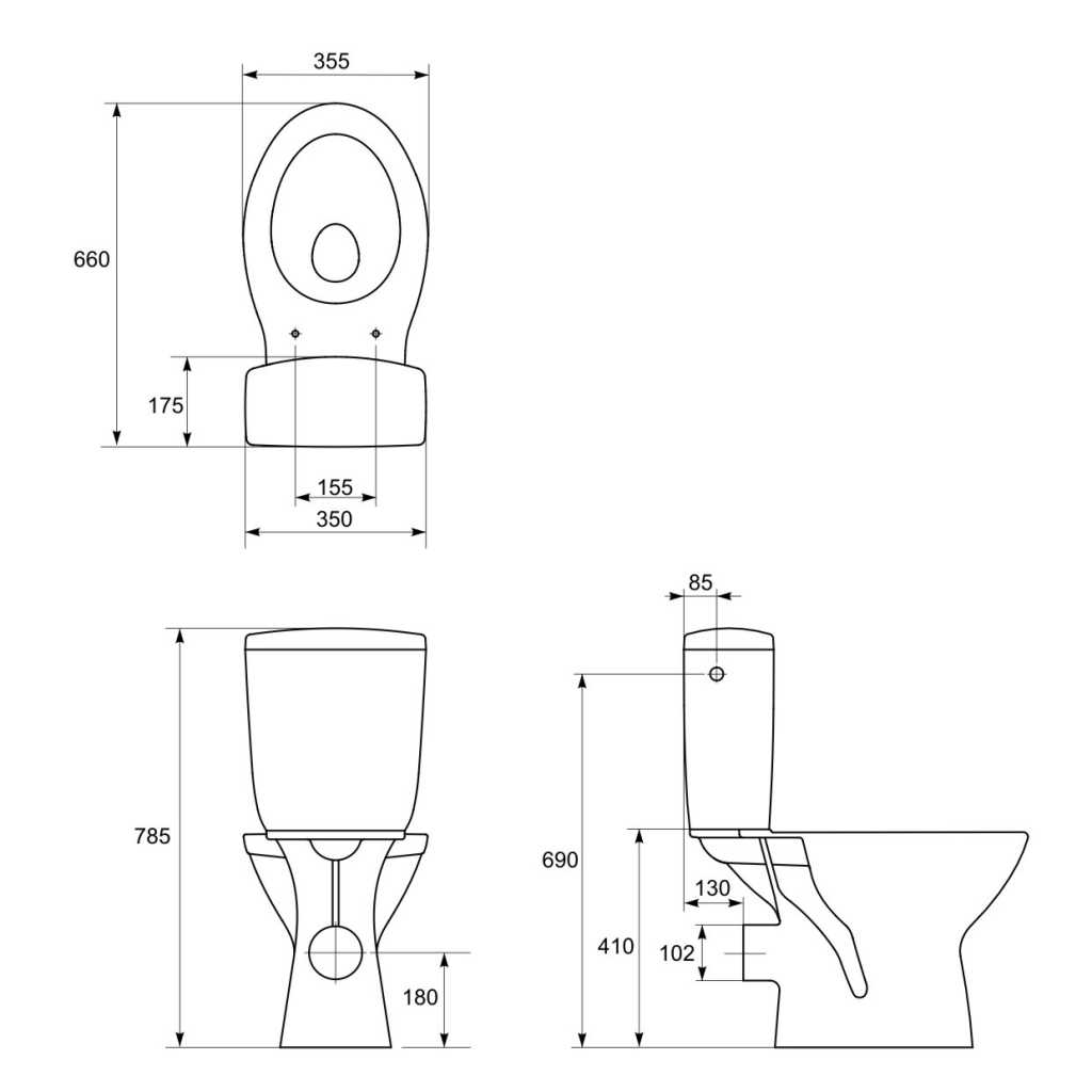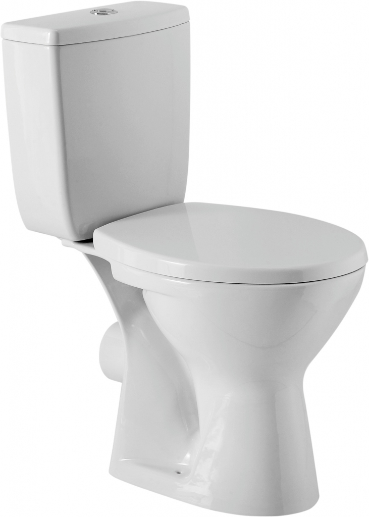 WC kombi stojící mísa ZENIT je s horizontálním odpadem a přívodem vody z boku nádrže s funkcí 3/6 l. Součástí polypropylenové, antibakteriální sedátko.