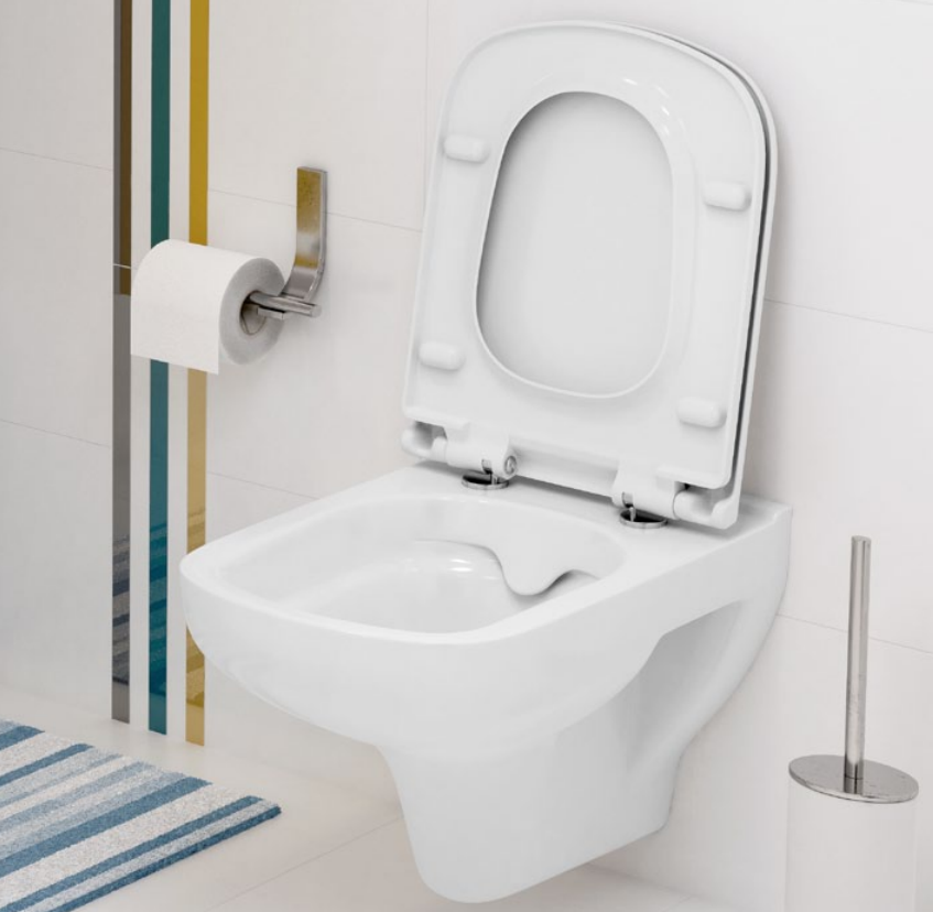 WC závěsná mísa COLOUR NEW CleanOn elegantního vzhledu s horizontálním odpadem, funkcí splachování 2/4, 2,5/5, 3/5l, která lze kombinovat s duroplastovými WC sedátky.