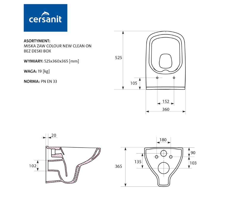CERSANIT - ZÁVĚSNÁ MÍSA COLOUR NEW CLEAN ON (K103-024)