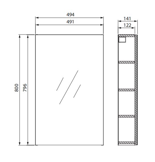 Závěsná skříňka se zrcadlovým čelem a 3 policemi uvnitř, která poslouží jako zrcadlo i jako místo pro uložení drobné kosmetiky. Skříň má bezúchytkový systém otevírání dvířek a tiché "soft close". Korpus skříně je vyroben z laminované dřevotřísky.