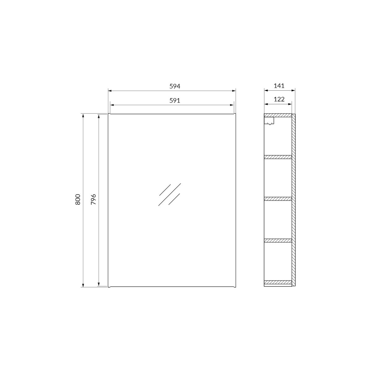 Závěsná skříňka se zrcadlovým čelem a 3 policemi uvnitř, která poslouží jako zrcadlo i jako místo pro uložení drobné kosmetiky. Skříň má bezúchytkový systém otevírání dvířek a tiché "soft close". Korpus skříně je vyroben z laminované dřevotřísky.
